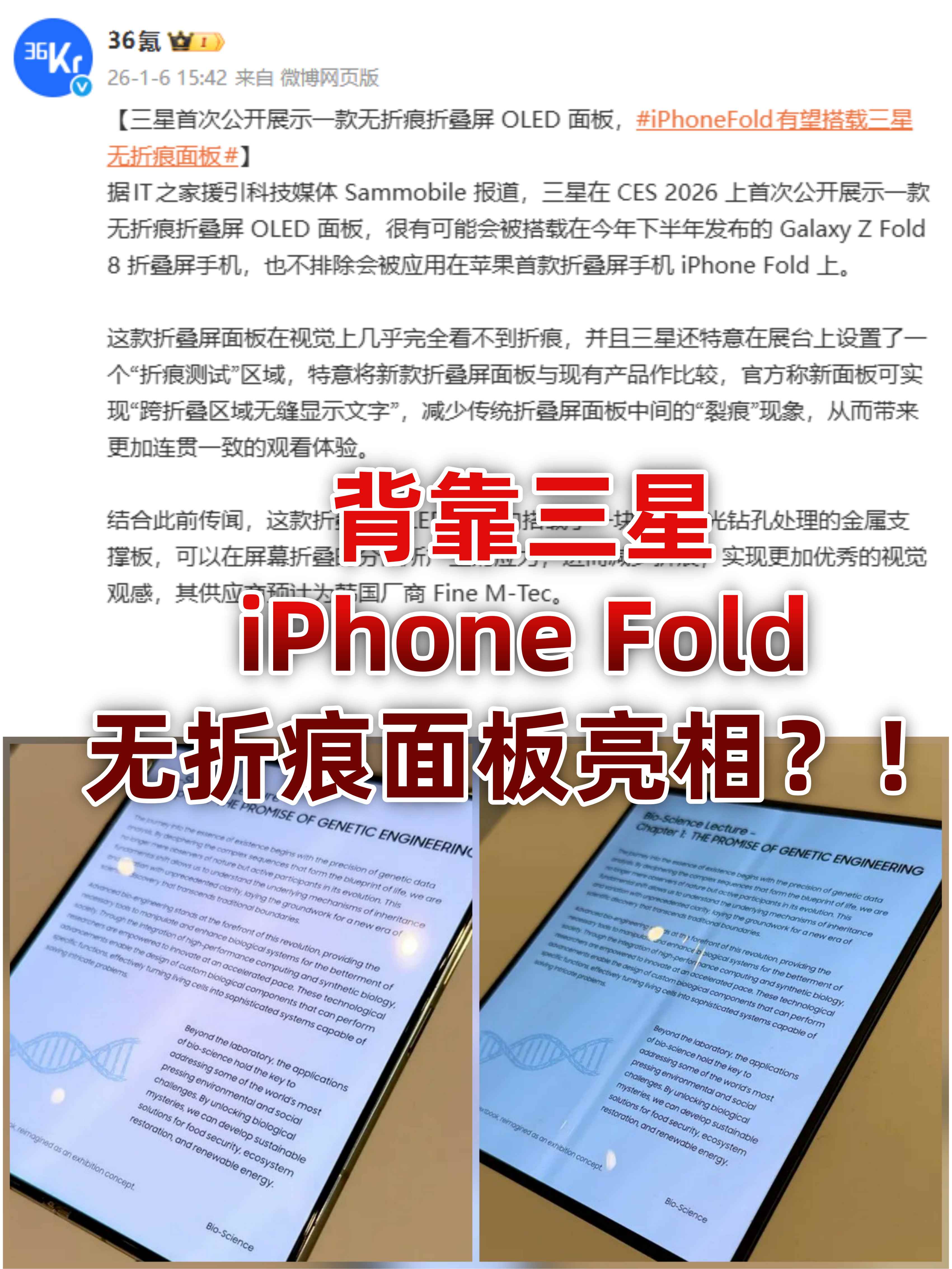 好嘛,难怪iPhone Fold从有消息开始就一直在说无折痕体验,原来是有三星做“靠山”!