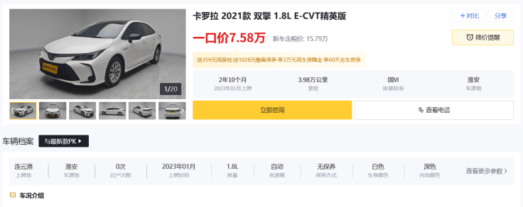 7万级省油之选:丰田卡罗拉双擎(2021款双擎 1.8L E-CVT精英版)
