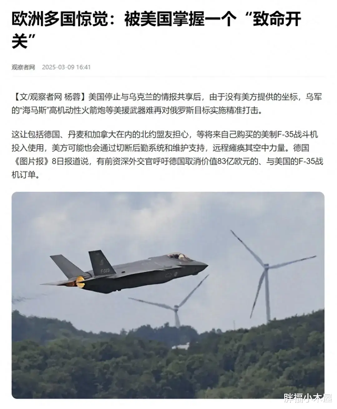 第二个原因就是乌克兰的遭遇敲响了警钟,因为美乌白宫大吵一架,美国直接断了乌克兰的军援,不仅如此,美方中断了对乌克兰军队的关键情报支持。这一政策转向已经导致美国援助乌克兰的“海马斯”高机动火箭炮系统(HIMARS)失去远程精确打击能力。,这一事件让欧洲猛然意识到:斥资万亿欧元采购的F-35隐形战斗机,也可能因美国的技术控制随时沦为“机库废铁”。