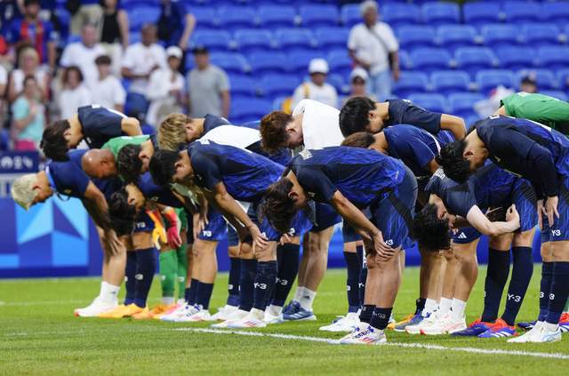 赛后,日本国奥全队面向看台90度鞠躬,向球迷们致歉。