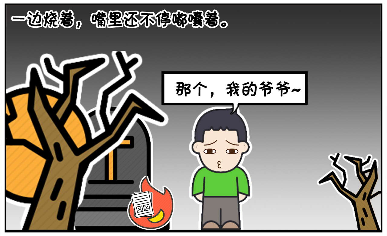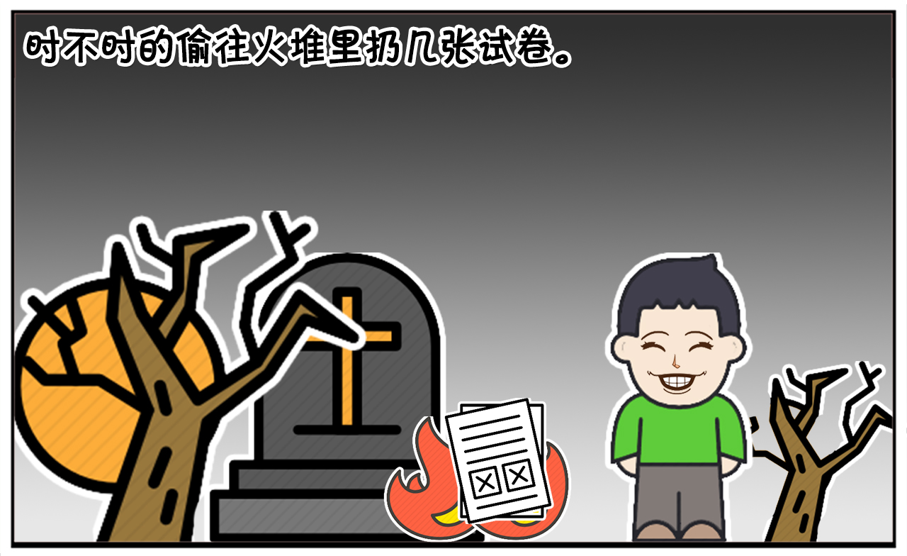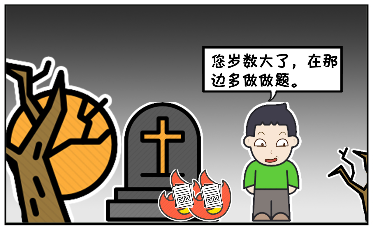 你说子阳聪明不聪明呀,清明节的时候把试卷烧给爷爷,让爷爷多做题,还让爷爷遇到不会的题去找老师。