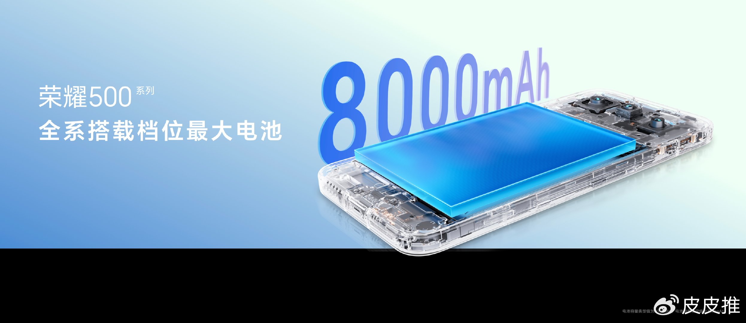 不仅性能拉满,荣耀500系列续航能力也全面升级,搭载8000mAh青海湖大电池,再度刷新档位手机电量纪录,成为档位唯一的“双八”规格产品,真正实现“性能与续航双双拉满”,荣耀500系列不做取舍,为用户提供一步到位的旗舰级体验。