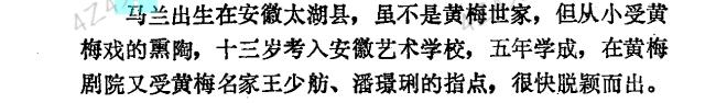 马兰是安徽太湖人,或许是受母亲的影响,又或许是环境使然,马兰从小就特别喜欢黄梅戏。