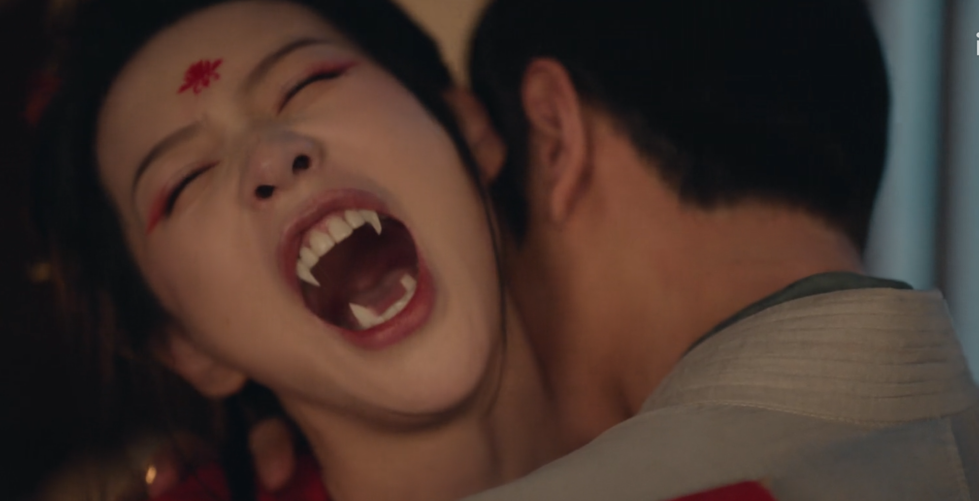 有点类似聊斋的事情,女子迷路啦,书生见色起意啦,马上就要咬人的时候突然发现两个人凑不出一个影子,碰上同行了也是,于是书生也露出了獠牙。