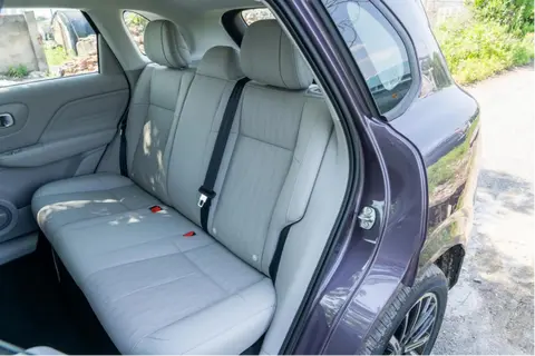 吉利银河 E5 的空间也有亮点,得益于纯电架构和 CTB 技术,车内纵向空间确实做得不错。我坐进后排,腿部空间也有将近两拳,和零跑差不多。值得一提的是它的后排地板是纯平的,中间坐个人的时候,脚不用蜷着,能减少长途乘坐的疲劳感,满员出行的时候这点特别实用。
