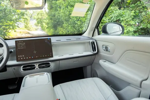 车内的屏幕组合也挺亮眼,8.8 英寸的全液晶仪表虽然不算特别大,但显示的信息比较全面,车速、实时续航、辅助驾驶的状态,甚至连轮胎温度都能看到,字体清晰,阳光下也不易反光。中控屏是 14.6 英寸的,2.5K 分辨率,看导航地图的时候,路边的路标都看得清清楚楚。操作起来也流畅,滑动切换界面、点选功能,几乎没有卡顿,这得归功于它用的高通骁龙 8155 芯片,之前坐过朋友的车,用的也是这款芯片,性能确实靠谱。