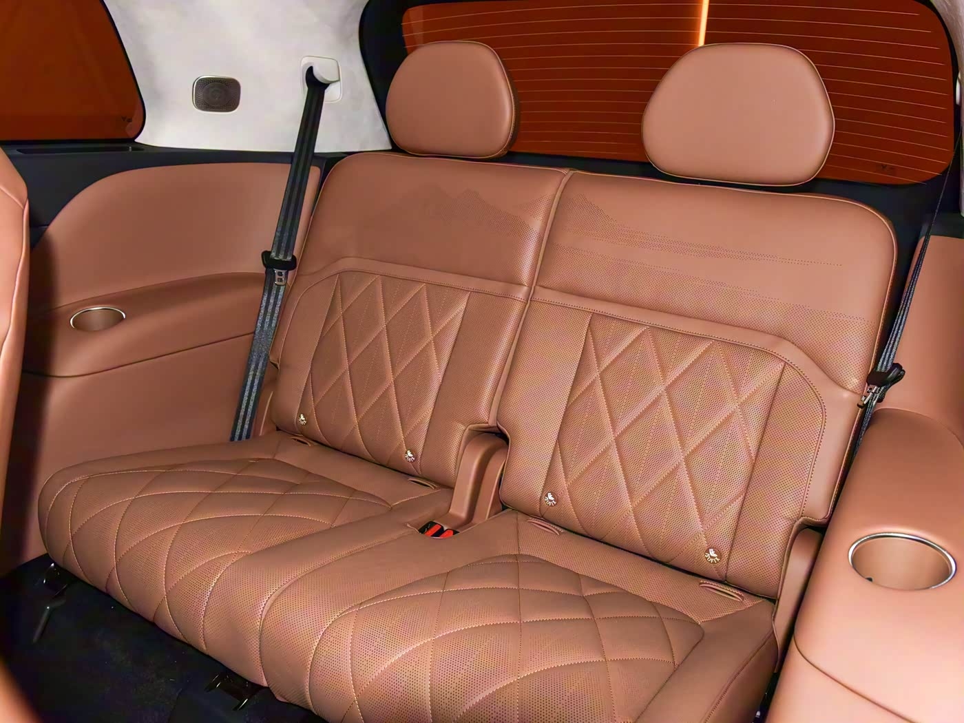 至于第三排座椅,空间也很宽敞,乘坐舒适性也很高,只不过相比第二排座椅,还稍微有点欠缺。在座椅两侧,能够看到杯垫。