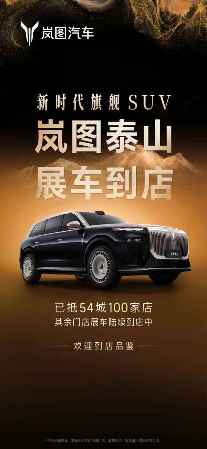 今日,岚图泰山首批量产车已正式抵达全国100家岚图空间与体验店,覆盖北京、上海、深圳、武汉、成都、杭州等54座城市。岚图
