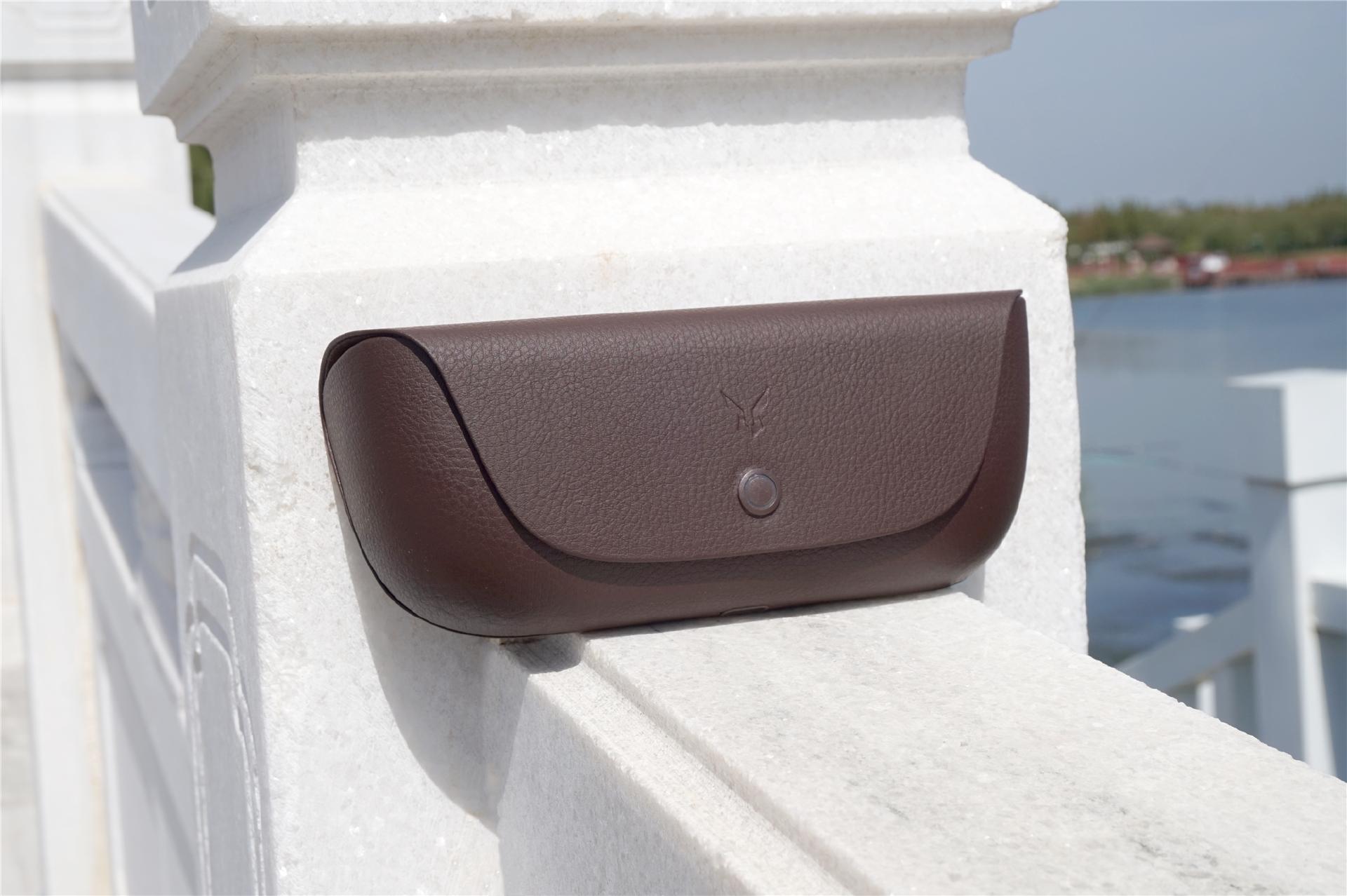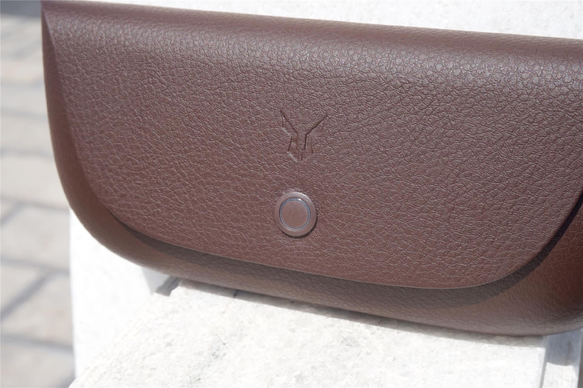 ⽃战者天禧智能体眼镜G1101平时的收纳,就是放在这个眼镜盒中。至于眼镜盒的表层材质,我不太清楚,但摸起来手感细腻、舒适。