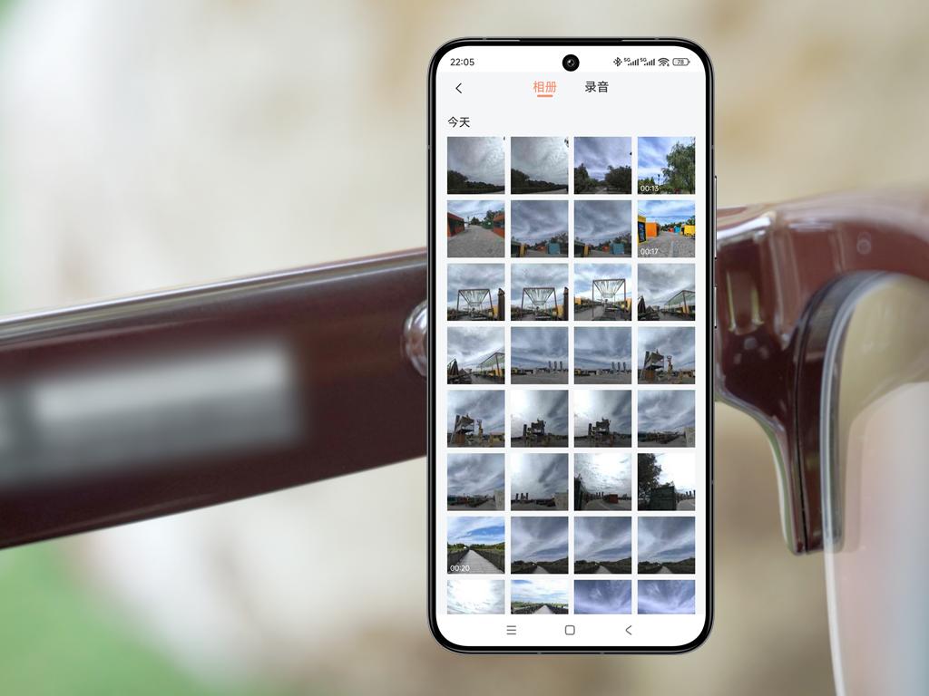 想要将这个眼镜所拍摄的画面传输到手机上,也是十分方便的。在APP上,打开“媒体文件”这个选项,手机上方就会显示出待传输的文件,只需一键就可以将这些文件快速传输至手机端,整个过程简单、省事,一点也不复杂。