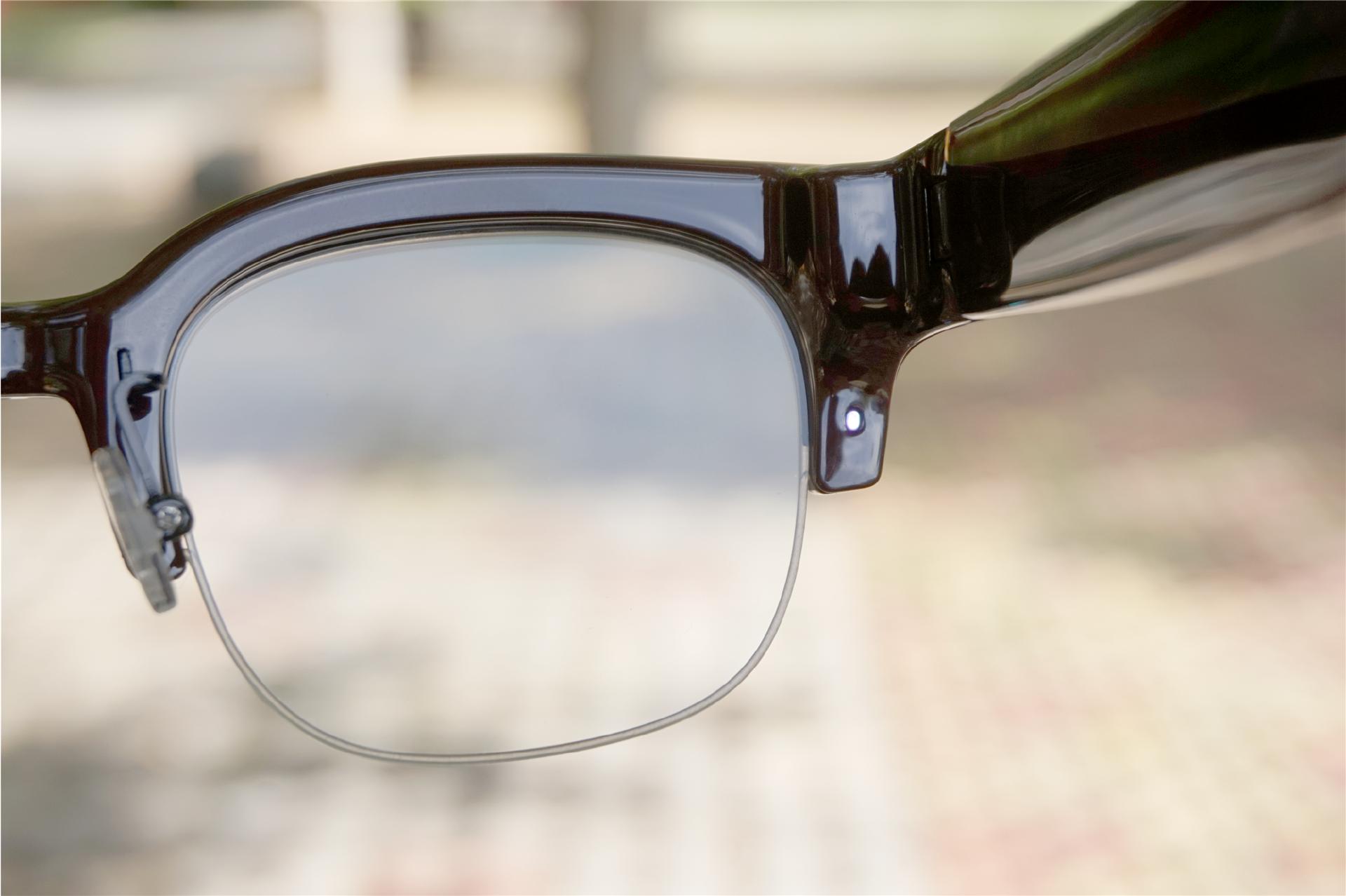 说到这里,就不得不提右侧镜框右上⻆的这颗指示灯了。设备在录像时,这颗指示灯会显示白色,眼睛的余光就可以看到,不用特意将眼镜取下来观察这颗指示灯。
