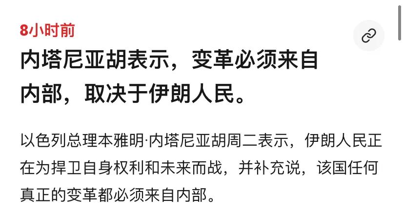 以色列总理内塔尼亚胡表态更直接,他说伊朗人民正在为捍卫自身权利和未来而战,该国任何真正的变革都必须来自内部。这取决于伊朗人民。