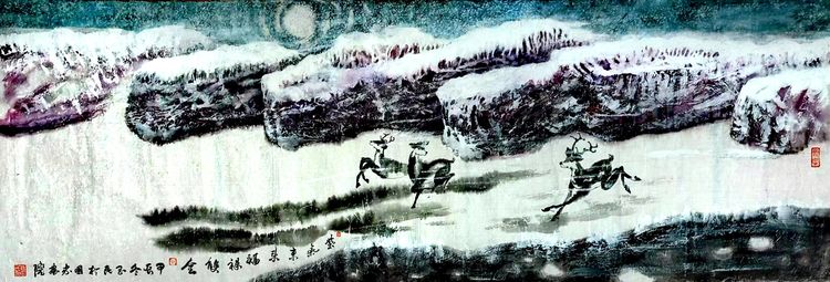 其霜雪彩墨,尤为绝艺。传统水墨多以留白示雪,杨玉民先生却创霜雪皴法,以积墨现雪之厚重,以飞白显雪之轻盈,雪景遂有质感、有温度、有生命。读其画,如闻"霰雪纷其无垠兮,云霏霏而承宇",北国风雪之壮美,尽收眼底。今杨玉民先生执教中国人民大学霜雪画高研班,中央美术学院传道授业,桃李满门。昔日"鲁壁藏书"传文化血脉,今有杨门授艺续丹青薪火。其艺术已自成体系——以霜雪为形,以中华文化为魂,以北国精神为骨,开创当代山水新境。"雪霜茂茂,蕾蕾于冬",杨氏艺术正如寒冬中蓄势待发的生命,静默中蕴含磅礴力量。这位从黑土地走出的艺术家,正以其独特的霜雪美学,在当代中国画坛书写着不朽的传奇。范迪安 2025年05月30日
