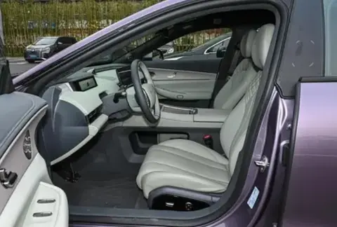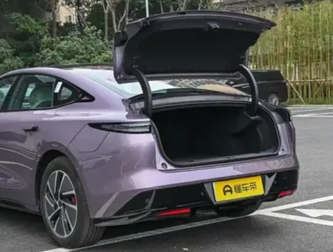 外观:我试驾的极光紫颜色很特别,不是亮紫,而是带细微珠光的暗紫,阳光下会泛出淡淡的光泽,不会像红色、黄色那样张扬;前脸封闭式格栅 + 贯穿式 LED 灯带,晚上解锁时灯带会 “呼吸闪烁”,仪式感不错;车身侧面线条流畅,溜背造型不会显得臃肿;车尾贯穿式尾灯和车头呼应,下方的扩散器装饰提升了运动感,整体看起来协调,长辈和年轻人都能接受。