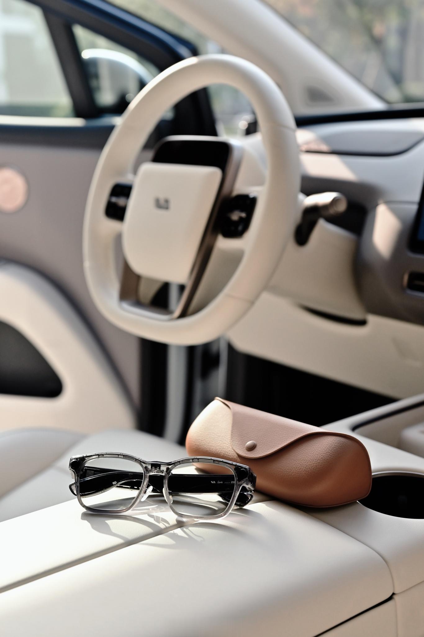 发布会上也提到,眼镜针对亚洲脸型做了加宽设计。不过对我来说,还是略窄一点——如果再宽一点就更完美了。从车主的角度,我很快想到两个实际使用场景:一是车外控车更自然。不需要刻意确认声音够不够大、清不清楚,可以像和人说话一样自然地和车交流。只需要轻轻一句:“理想同学,打开左滑门”,车门就自动打开了。二是开车时配合导航。眼镜完全可以替代头枕音响的角色,用来播报导航,不影响车内音乐播放。如果车主普及开来,理想车型甚至可以更合理地不再配头枕音响——算下来性价比还挺高。