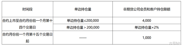 非期货公司会员或者客户在上述期货品种各合约上单日开仓量不得超过其交易限额。该单日开仓量是指非期货公司会员或者客户当日在单个合约上的买开仓数量与卖开仓数量之和。