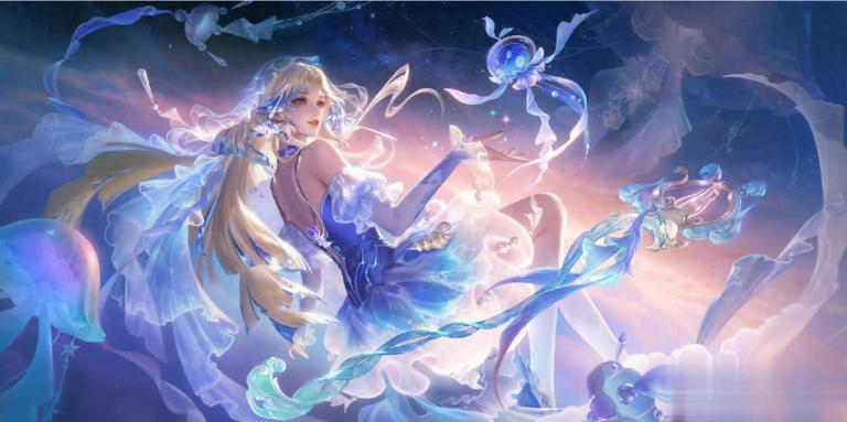 从目前曝光的信息来看,“长夜焕生”确实有点东西。官方放出的概念海报里,王昭君一袭星蓝渐变长裙,裙摆上缀着流动的星河纹路