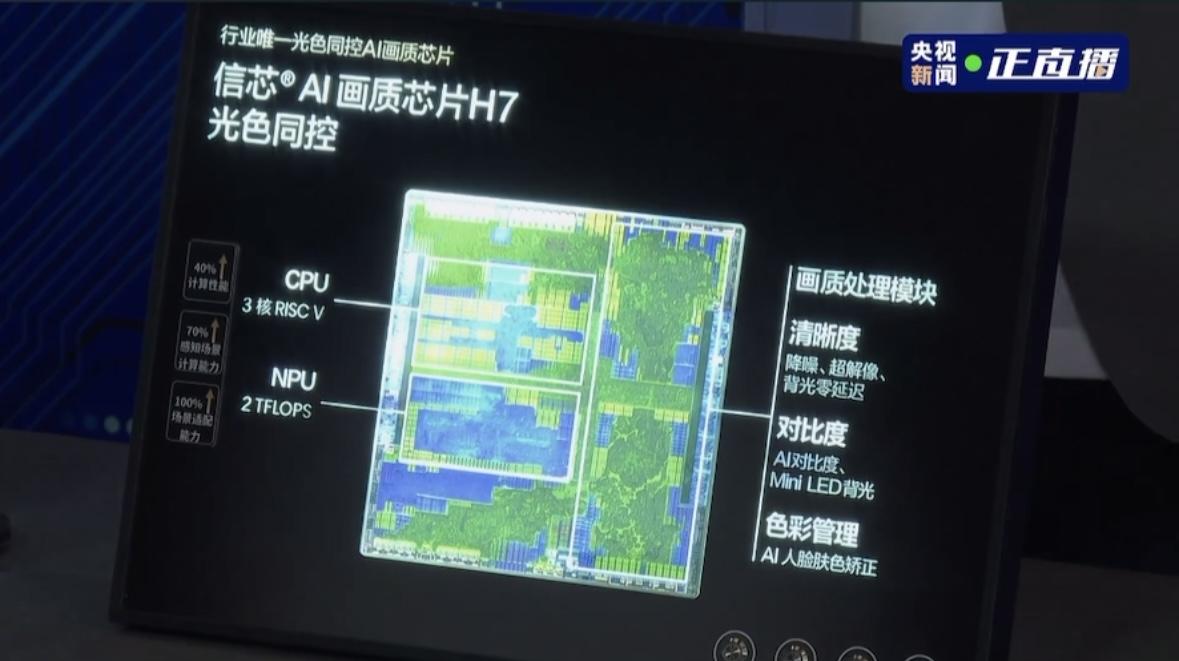 更牛的是,这些灯珠由信芯AI画质芯片H7精准控制,控光分区达到行业顶级水平,控色精度更是高达108bits。这意味着什么?就是颜色过渡超级顺滑,不会出现“色块断层”那种廉价感。你看一朵花慢慢绽放,从花蕊到花瓣边缘的渐变,细腻得像真的一样;科幻片里的霓虹城市夜景,每一盏灯都独立发光,不串光、不溢光,真实感拉满。