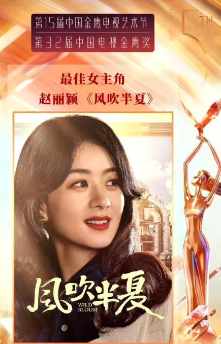 赵丽颖因为在《风吹半夏》中的精彩表现,拿下了飞天奖和金鹰奖的最佳女主角奖,成了中国电视剧史上最年轻的双料视后。