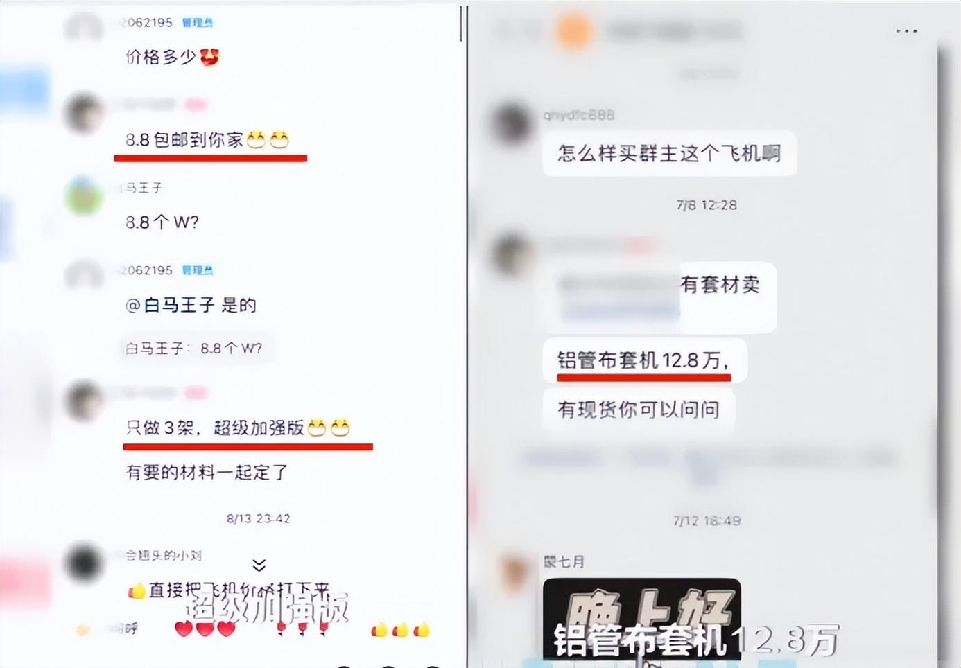 但是随着那些试飞视频在社交平台爆火,卖飞机零件的利润率超过挂面机,在金钱的驱使下他们都转向了“造飞机”。