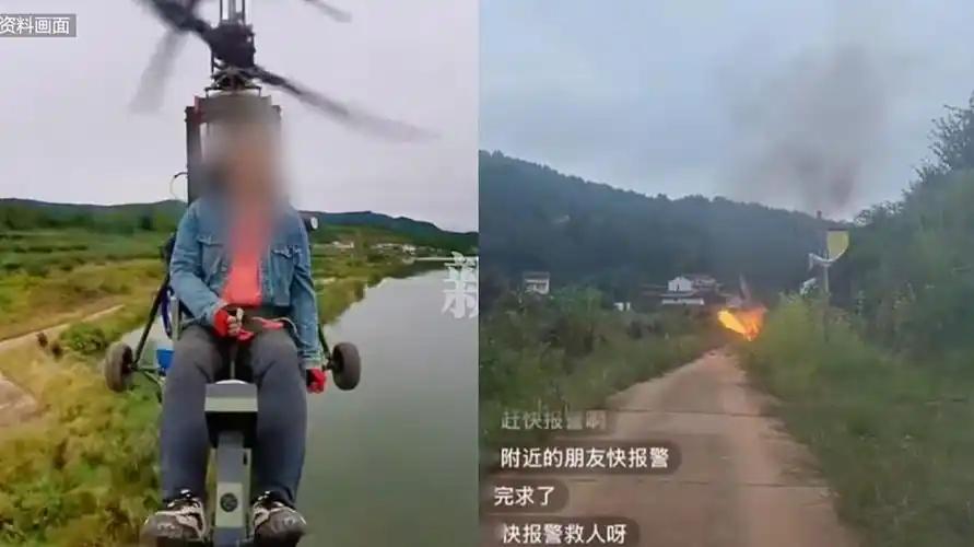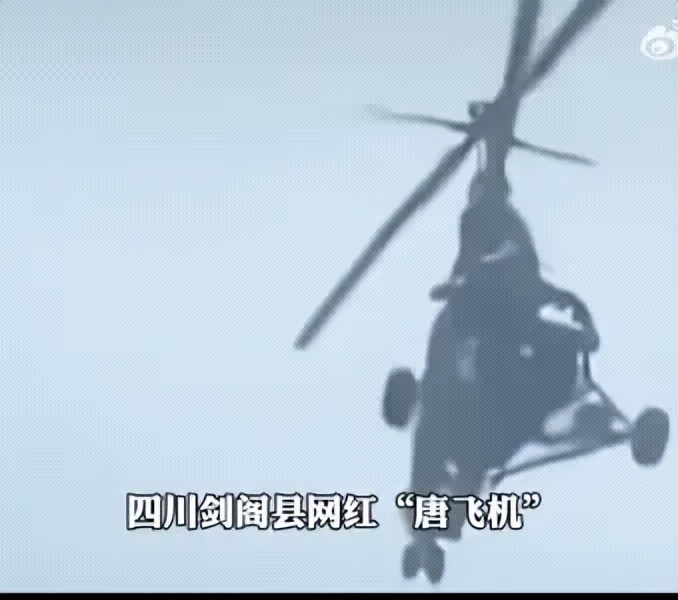 四川剑阁县网红唐正兴(网名“唐飞机”),在直播中驾驶着自制的飞行器起飞,但不久飞机就失控坠毁并起火了。