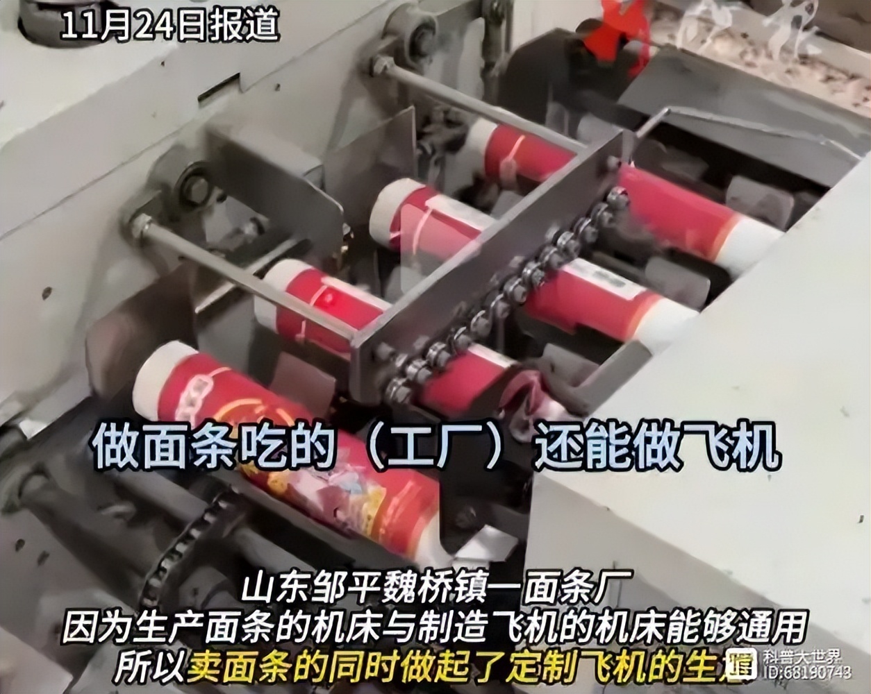 然而现实情况比想象的更加魔幻,这家工厂压面条才是主业,至于飞行器零部件,只不过是顺手加工出来的罢了。