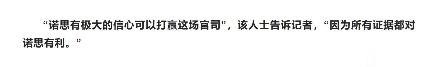 并且诺思表示:“诺思有极大的信心可以打赢这场官司,因为所有证据都对诺思有利。”