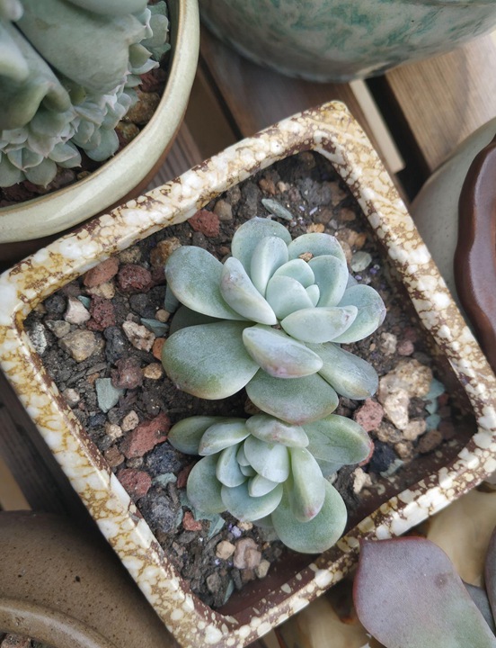咱们先说说多肉植物本身的特点吧。多肉植物种类繁多,每一种都有自己独特的地方。像静夜这种多肉,它的叶片小小的,紧凑地排列在一起,就像一朵盛开的莲花。还有熊童子,它的叶片顶端带着红红的爪子一样的小尖,特别可爱。再比如说玉露,它的叶片晶莹剔透的,像一颗颗绿色的小珍珠。这些多肉植物各有各的美,但是要让它们在不太理想的环境里展现出最美的样子,可不容易。