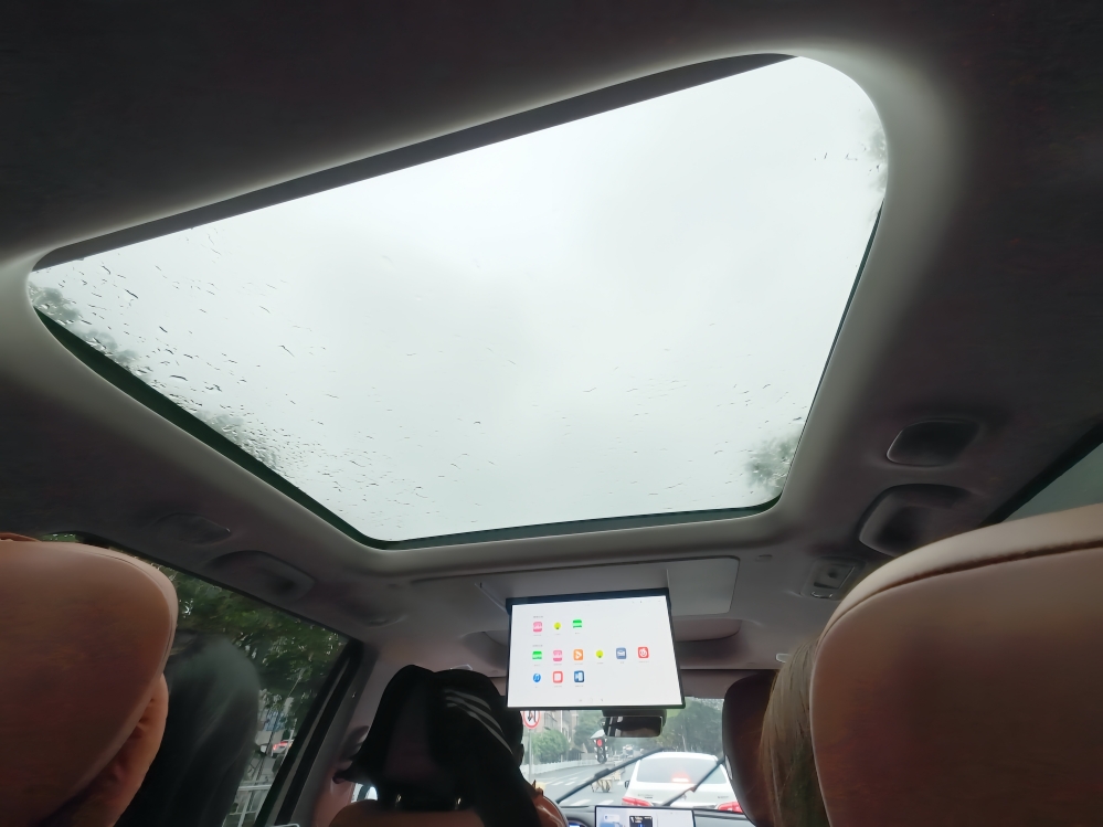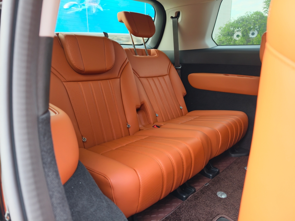 由于人员较多,我不得不挤上一台向往S9…的第三排座。头一回体验这台长5米SUV的后排乘坐空间,却没有我预想中的那么局促,每位乘员都能享受到相对舒适的坐姿,即便三排容纳了我这个170㎝/80㎏的胖汉,在城区短途行驶场景下也足够应付;座椅角度支持无级电动调节,头部还有空调出风口和音响,唯一不足的是地台较高导致腿部悬空影响了舒适性。