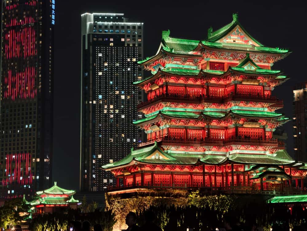 晚上在江滩露营地享受自助烧烤后,夜游滕王阁,历史与现代在这一刻完美融合。