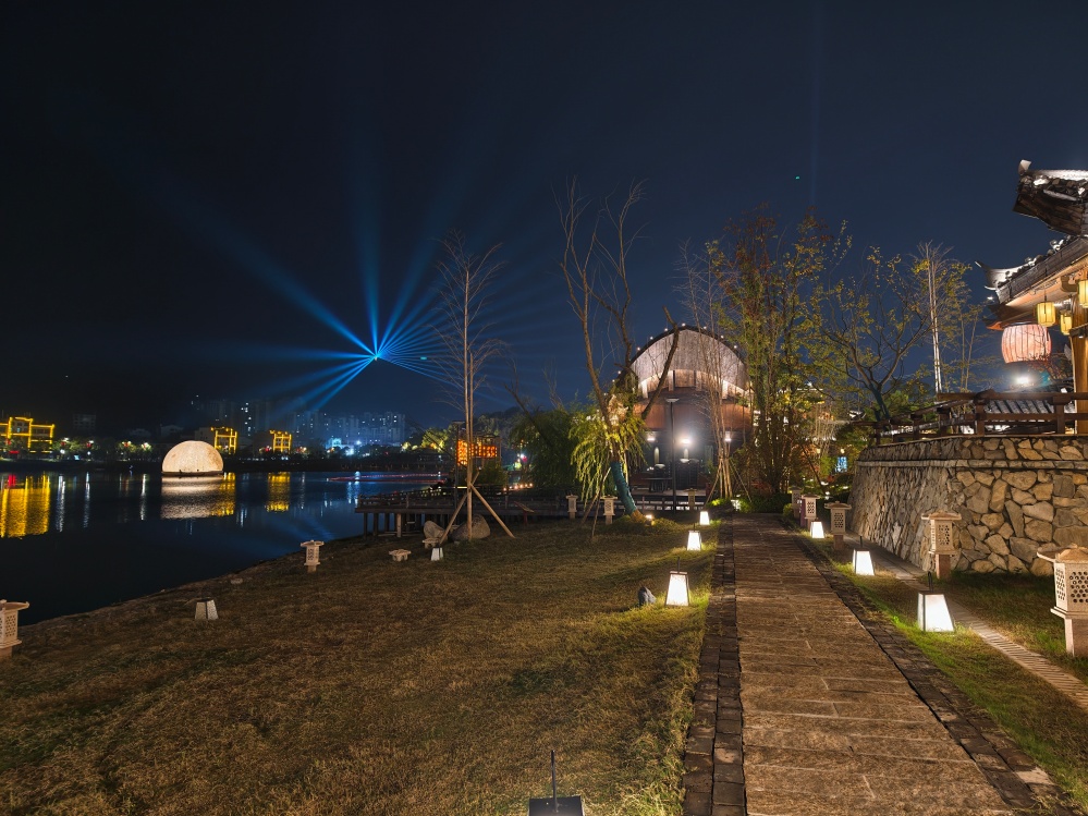 夜晚的南岳里庙会歌舞升平,灯光秀看得让人如痴如醉;美酒佳肴,乘兴而归。