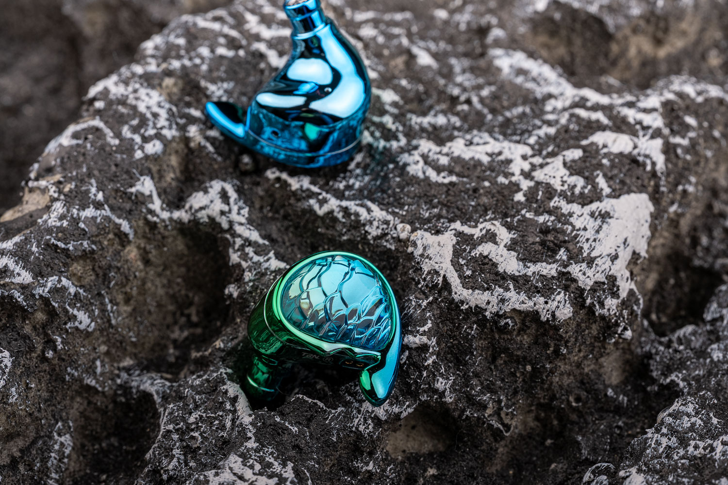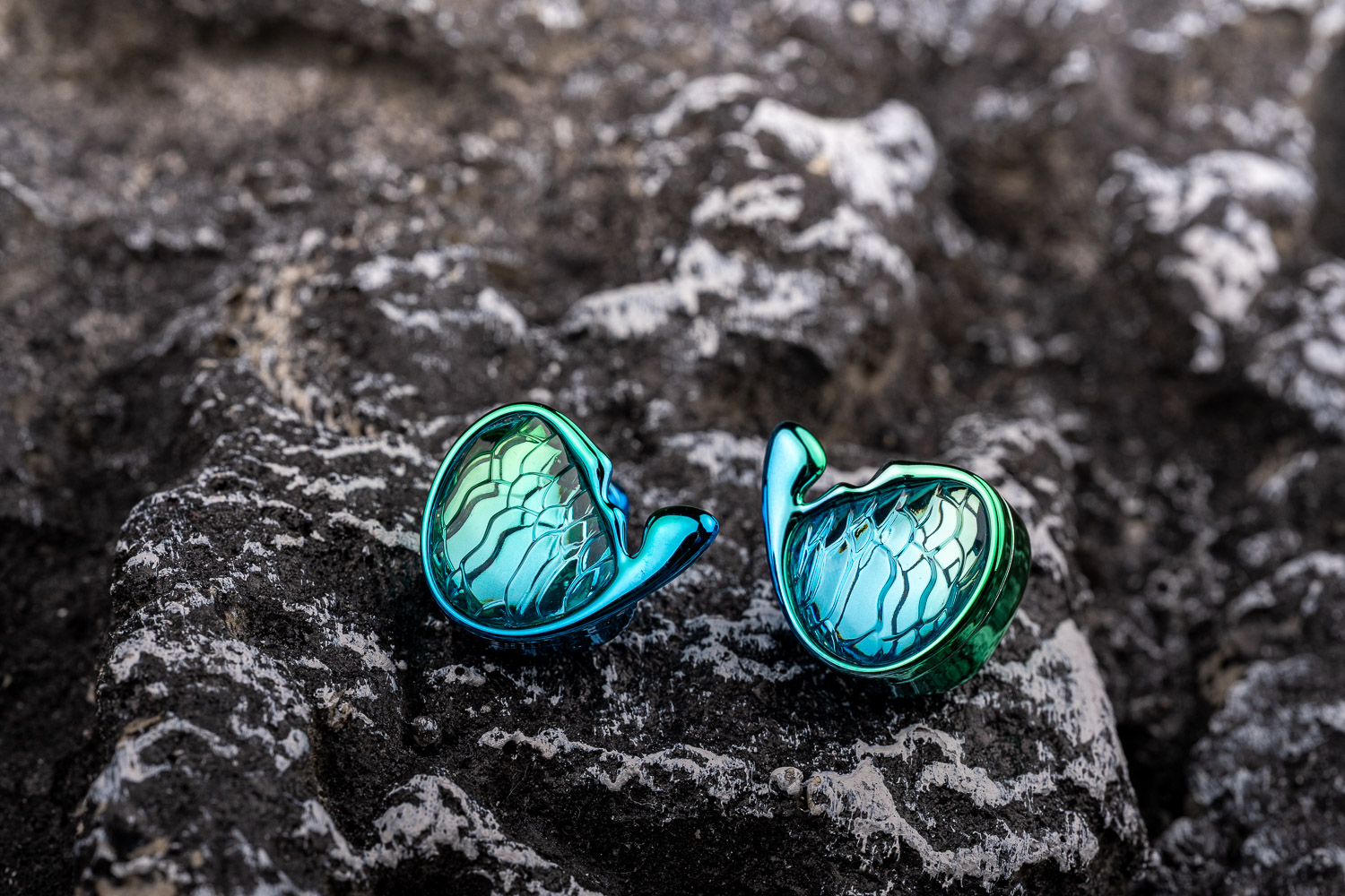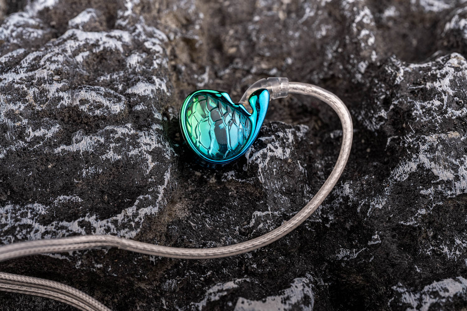 颜值这块,用比较时髦的一个说法就是,我觉得美人鱼应该是处于顶级到夯之间的水平,乍一看漂亮的做工不一定好、做工好的不一定有辨识度、有辨识度的可能看起来缺乏美感或者又太猎奇(比如TRN自家的水母之类的),但美人鱼算是把这几个要素全给占了。我拍摄的这个是“翠影绿”,也有“墨夜紫”版本可选,都是那种一眼惊艳的类型、有着很好的光泽度。不过我倒是不太确认美人鱼表面的材料用的是什么,虽然摸起来有一点玻璃质感和金属质感,但从重量方面它告诉我应该主要是树脂材料,如果要说有什么缺点的话,内侧的电镀面虽然挺亮骚的,但刚开箱就很容易留下细微的划痕、抗污能力也较弱,强迫症患者得勤擦拭,未来迭代的时候也许可以改善一下这点。