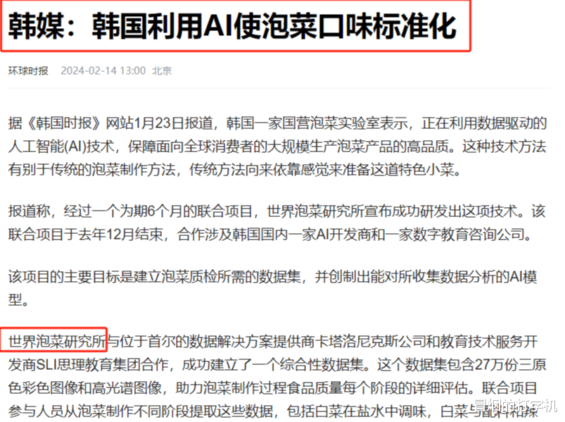 而这家“世界泡菜研究所”对韩国泡菜的开发,远不止这篇研究中“减肥”这一点,他们现在还在研究用AI使泡菜口味标准化!