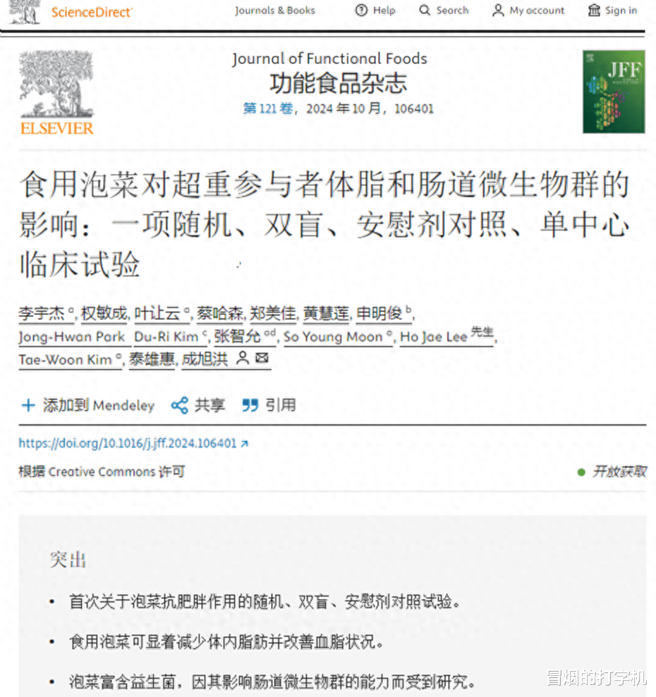 有韩国研究者在国际期刊《Journal of Functional Foods》(功能食品杂志)上发布了一篇最新的研究论文,研究结果显示,“多吃韩国泡菜可以抑制体重,并对肠道微生物稳态有积极影响”!