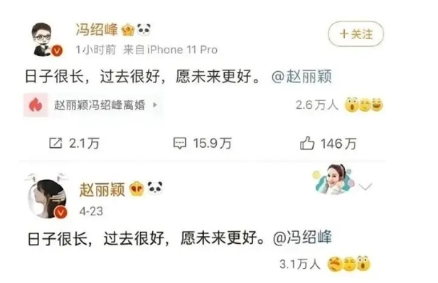 @赵丽颖 @冯绍峰 :日子很长,过去很好,愿未来更好。