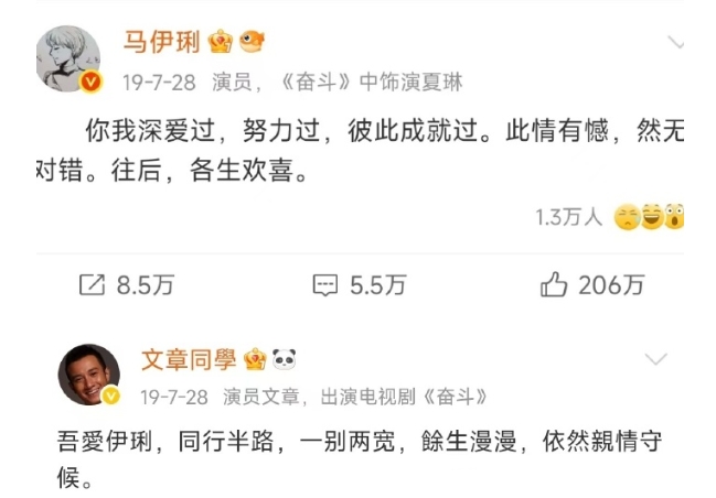 @马伊俐 :你我深爱过,努力过,彼此成就过。此情有憾,然无对错。往后,各生欢喜。