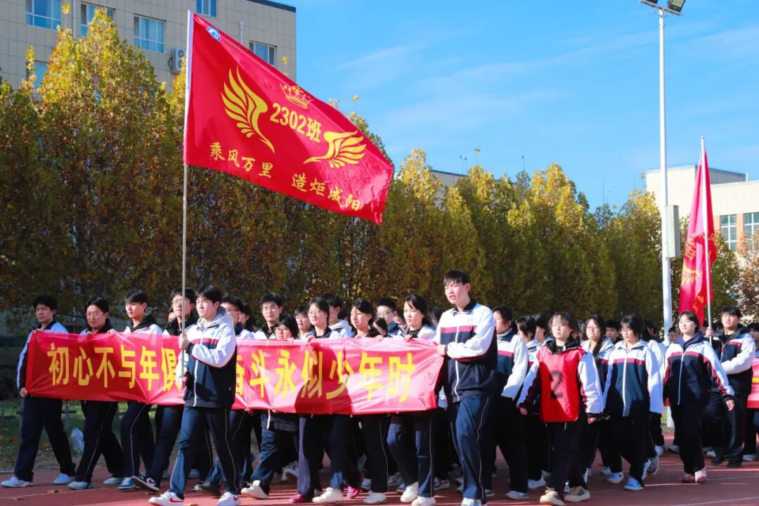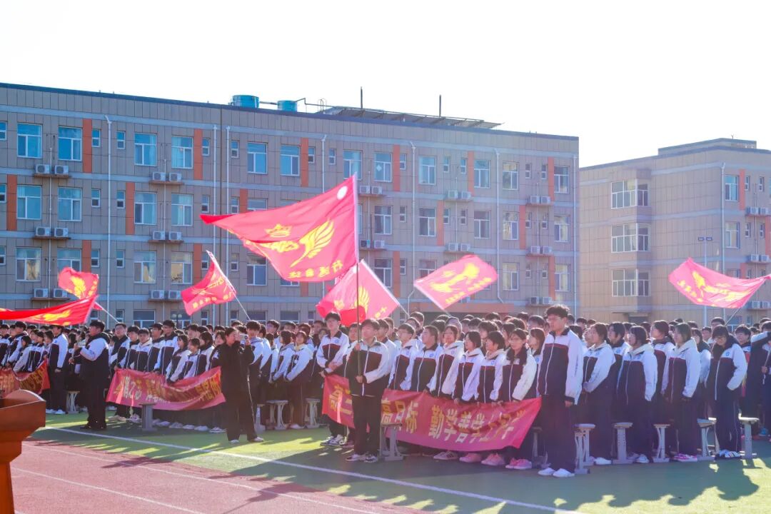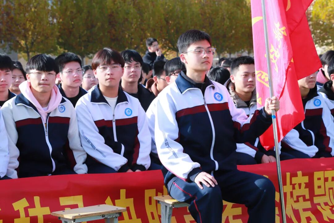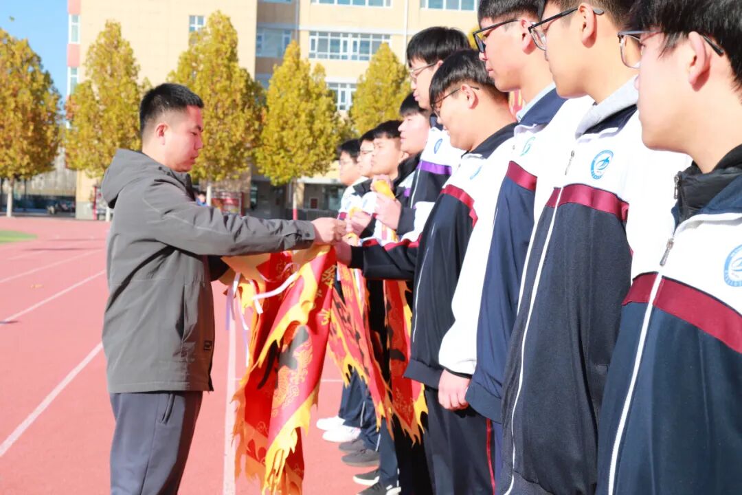 最后,各班的学生代表奋力挥舞起手中的班旗。一时间,操场上旗帜飞扬,翻涌成一片青春的海洋。那猎猎作响的旗帜,仿佛在回应每一个青春的梦想,宣示着为同一个目标而战的集体荣耀与无穷力量!