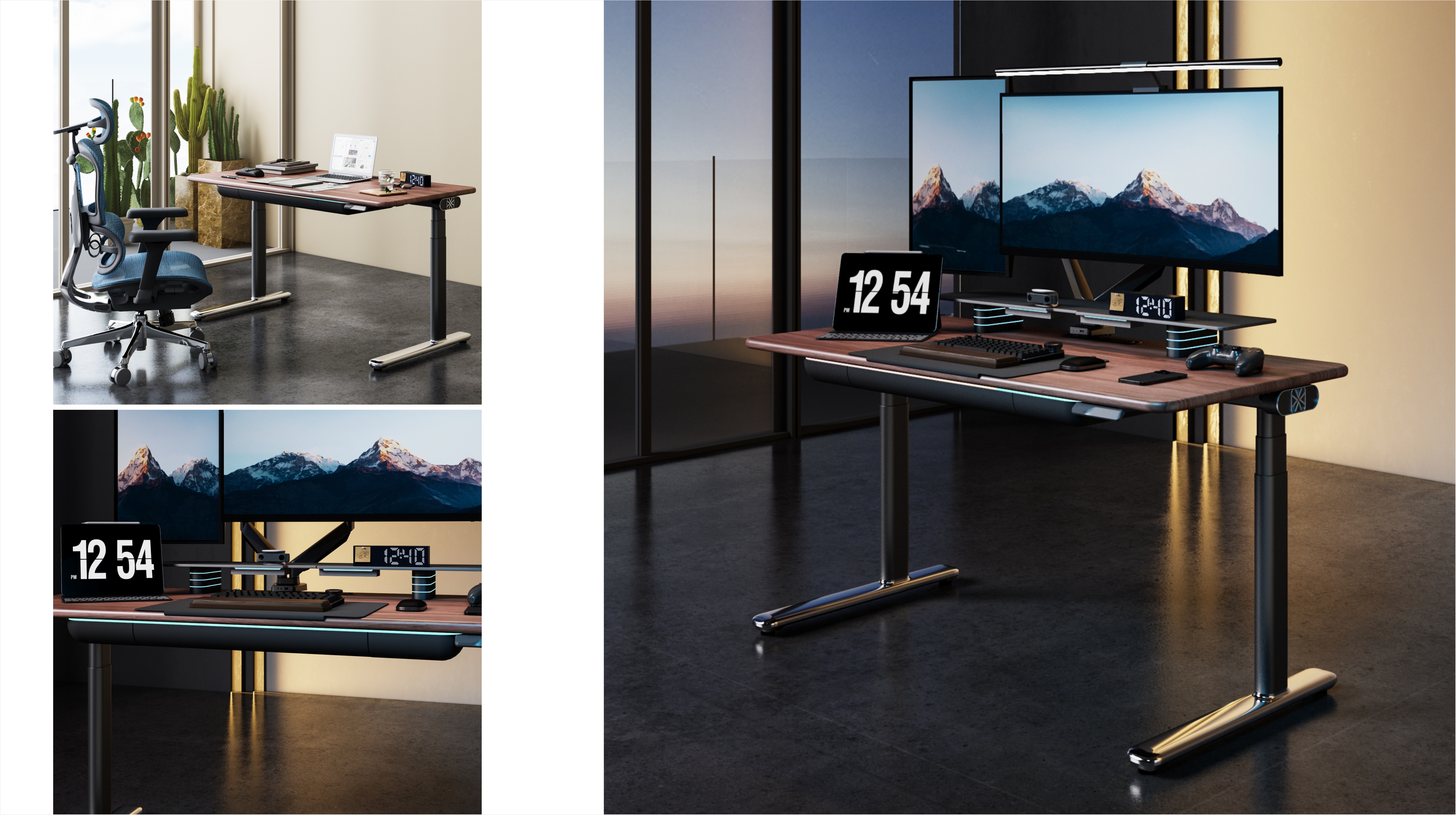 a.IT精英/设计师:实木质感适配高端办公,双电机+多接口满足多设备需求,智能灯带助力创作;
