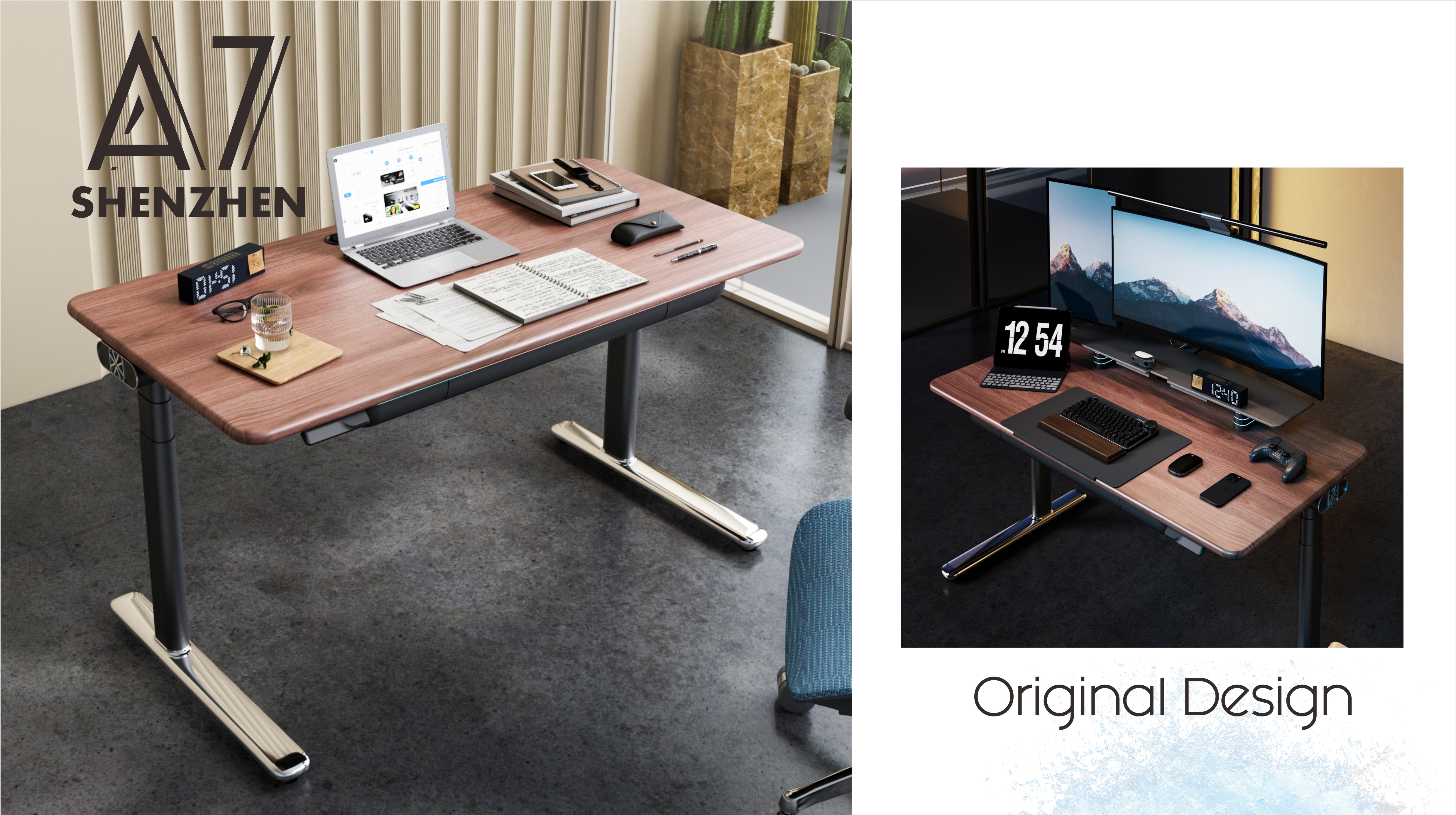 针对实木台面重量与高端场景对稳定性的需求,A7胡桃木在动力输出与结构设计上做了深度优化,确保升降“快、稳、静”,彻底解决“实木桌升降卡顿、晃动”的顾虑。