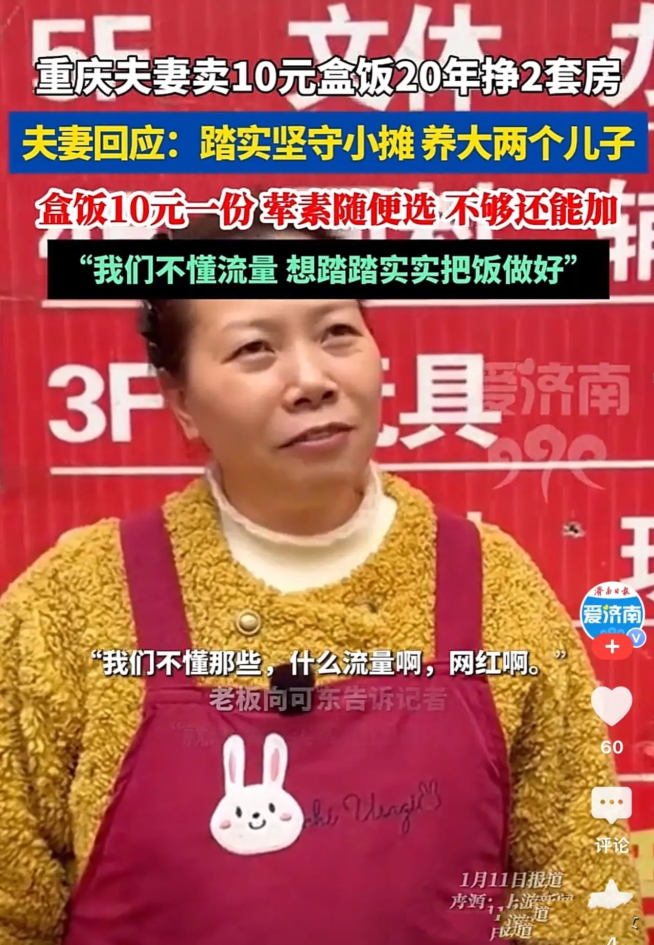 是啊,一盒10块钱的盒饭,算不上山珍海味,却能给奔波的人带来满满的能量;一个小小的盒饭摊,没有惊天动地的故事,却藏着最动人的生活本色。在重庆这座快节奏的城市里,总有这样一群人,用最朴素的坚守,守住人间烟火,托举起平凡日子里的温暖与希望。而这,正是生活最本真的模样。