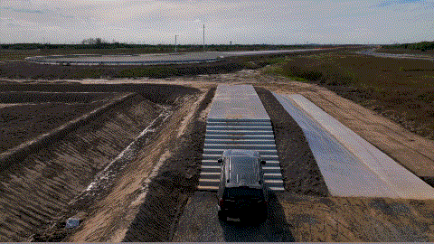 包含50%-100%四种不同角度坡路、坡面S弯、沙地、碎石坑等路面,能够满足具有分动箱、差速锁装置的全时四驱、分时四驱系统的SUV及轻型商用车试验需求。重点验证车辆在极限越野场景下的动力系统可靠性、车身结构强度及越野通过性。