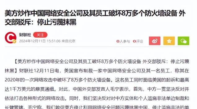 据了解,美方在新闻指出,关天烽所在的公司于2020年策划一场全球性的信息攻击,导致美方在3天内损失了8万多个防火墙设备,用户数据遭到盗窃,所以才开出千万悬赏。