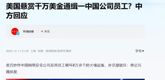 美国悬赏千万美金通缉一中国公司员工?中方回应丨环球时报