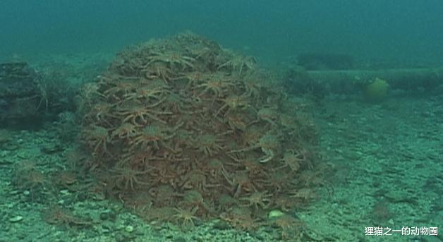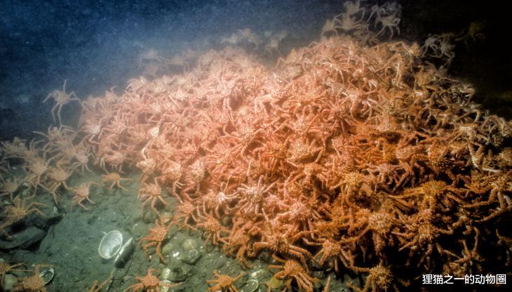 它们能出现在这里就是因为全球气候变暖导致的水温上升,虽然现在是位于盆地这个温度较高的区域,但继续这么发展,很快它们就能进入南极洲大陆架!根据拍摄来的素材可以看到,一大堆帝王蟹团成一团,在光秃秃的海底爬行。