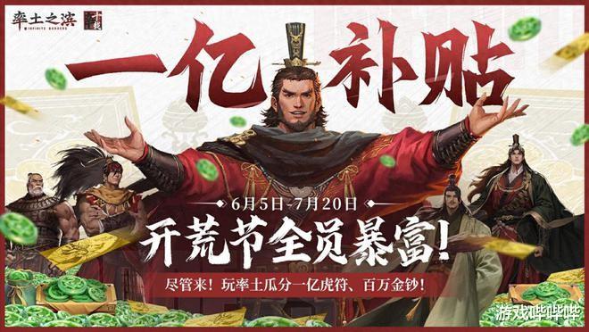 6月5日至7月20日,《率土之滨》开启"1亿补贴开荒节"活动,玩家只要进入指定青春服或经典服,完成相关任务就能瓜分7千万虎符、百万金钞和5000份春风联动限定礼盒。更夸张的是,攻占5级以上土地还能触发彩蛋,最高爆出9999虎符!以前你需要氪金648才能得到的资源,现在打打地就能爆出来。
