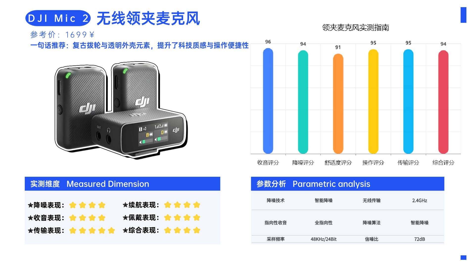 Mic 2 支持最高250米无线传输,并采用全指向收音设计,着重优化人声听感,能够在日常拍摄环境下保持清晰自然。设备兼容相机、手机、平板等主流平台,操作简单便捷。不过在极端复杂环境或远距离场景中,传输可能会略受干扰,属于中等使用者需注意的点。