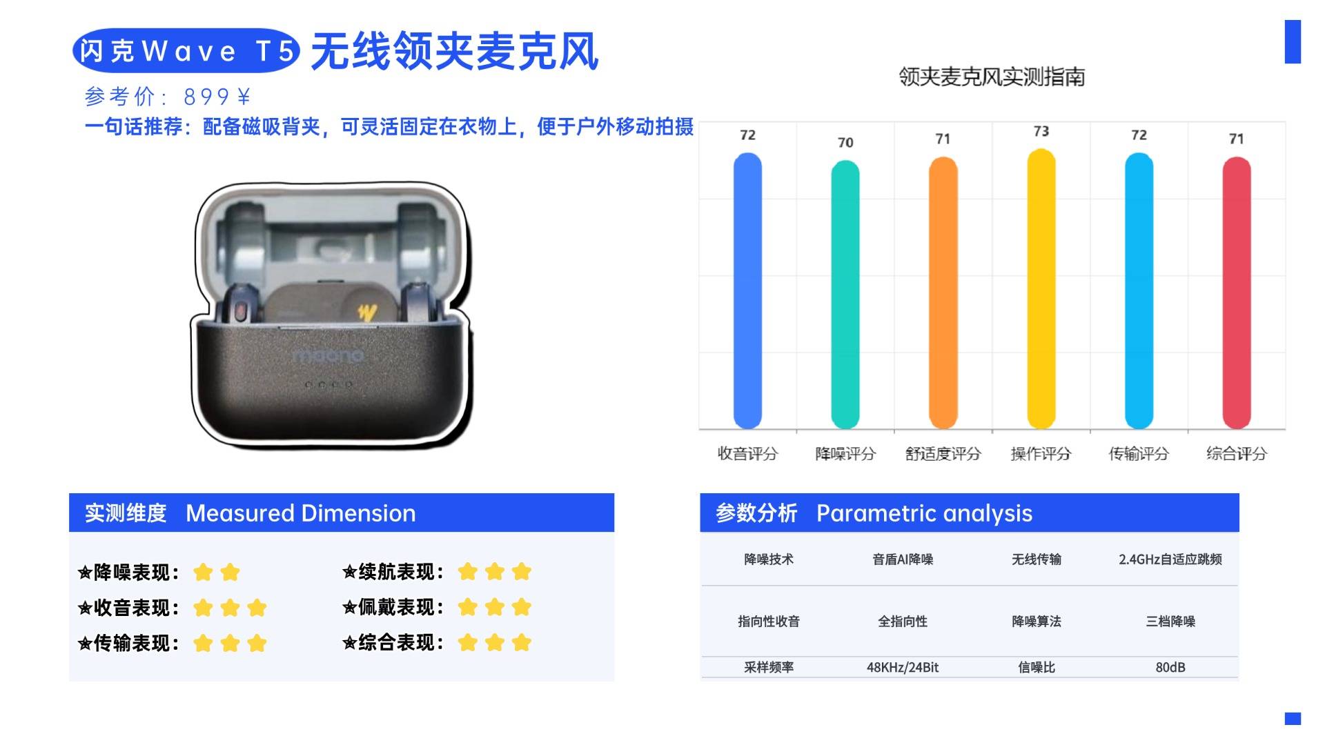 闪克 Wave T5 以 轻巧便携、稳定无线、强AI降噪 为亮点,适合双人或多场景拍摄。音质清晰、降噪可调、远距离传输可靠,但在极端环境下降噪仍有限。整体性价比高,是视频创作者的实用黄金搭档。