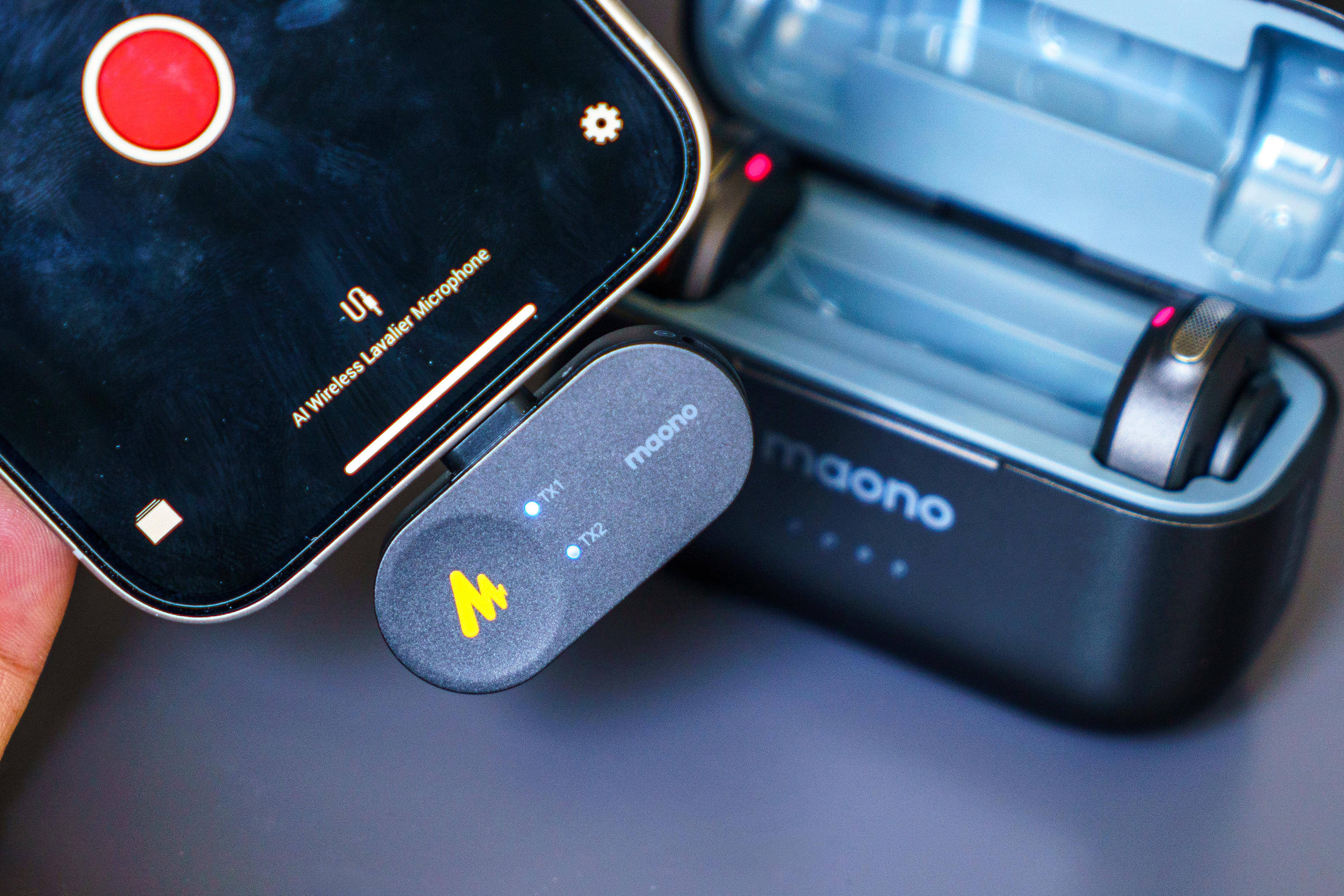 AM18 采用 2.4G 无线技术,可实现一拖二多声道录制,支持手机、相机等多种设备连接。无论是安卓、苹果手机,还是专业相机,都能快速配对使用。信号在室内及开阔场景稳定,但在高干扰环境或复杂户外场景下,可能偶尔出现小幅延迟或断连。