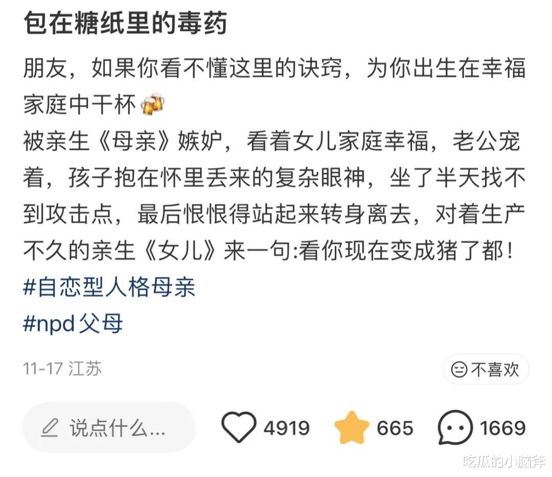 他们对自己的孩子,藏着一种特别恶心、特别阴暗的心思 —— 不是爱,不是关心,而是微小又隐秘的恨意,还有见不得人好的嫉妒。