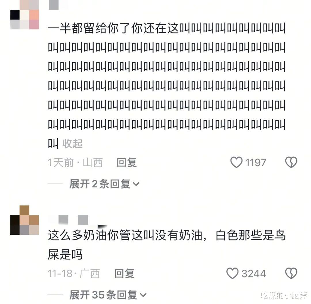 更离谱的是那句 “没奶油”,我真想顺着屏幕冲过去问问她:“您这眼睛是出门忘带了,还是被糊了水泥啊?蛋糕上白花花、软乎乎的那不是奶油?”